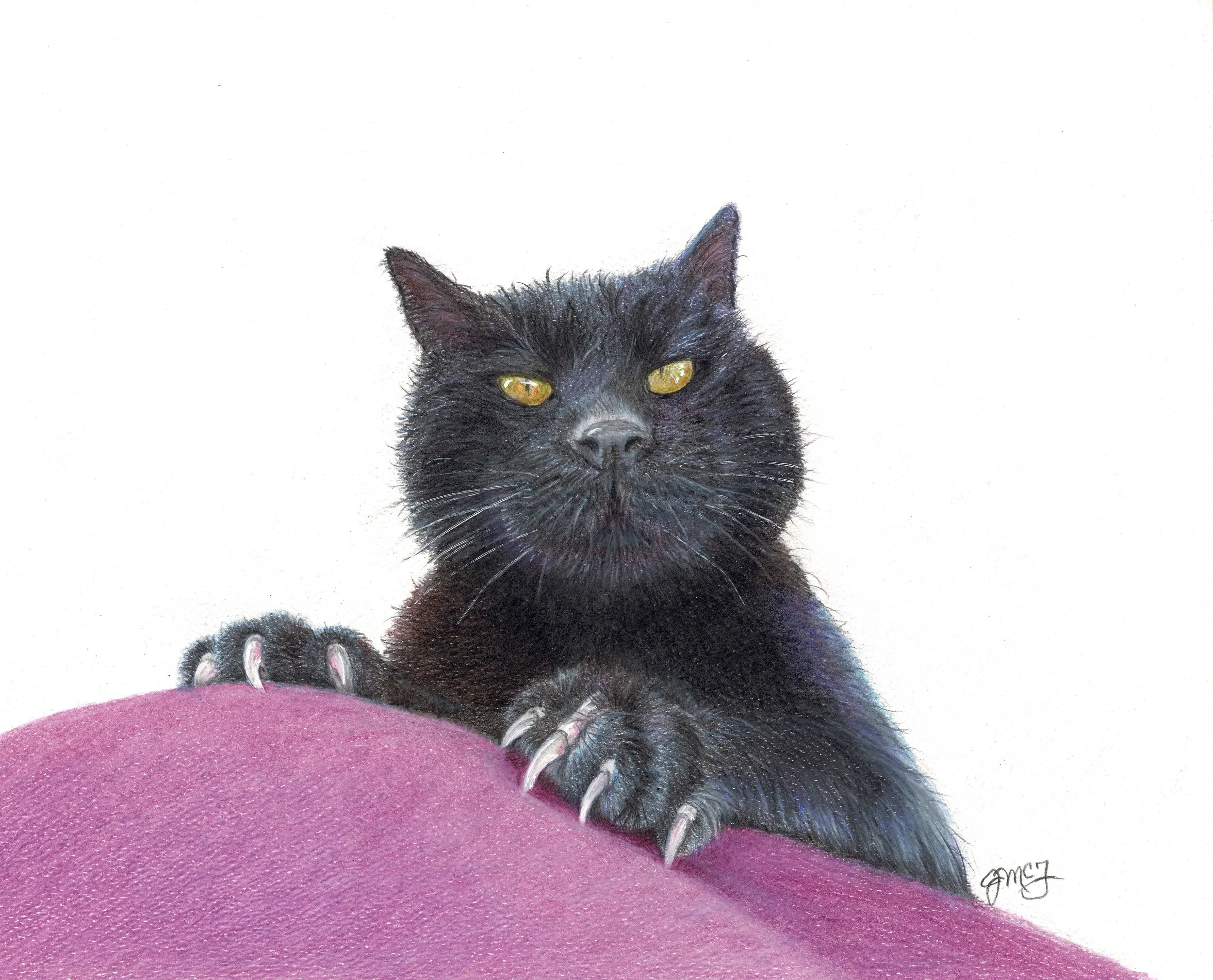 All cats are available in Giclee prints in various sizes. For sizes and prices, see my Pricing Page.